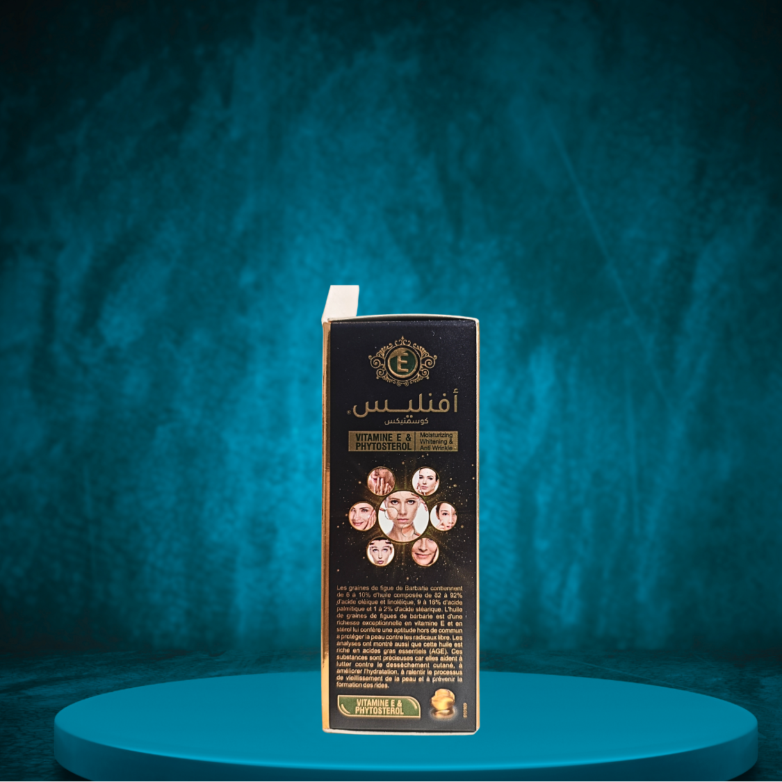 - Vitamines : Contient des vitamines A, D et E qui contribuent à la régénération cellulaire et à la protection de la peau.