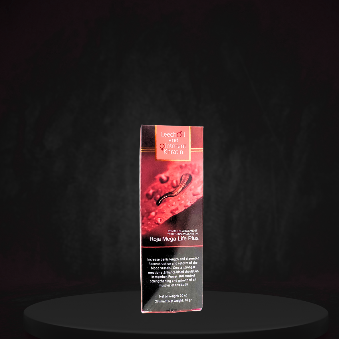 Roja Mega Life Plus propose une combinaison de l'huile de sangsue et de la pommade Kharatin, issues de la médecine traditionnelle iranienne.